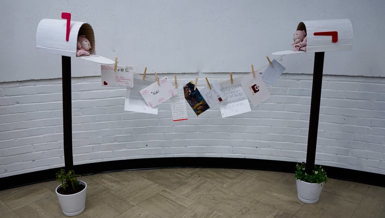 Outgoing is a sculptural representation of how "home" can travel as one transitions into higher education and beyond. Each mailbox was fabricated out of balsa wood and anchored into soil, with real letters and personal objects representing physical distance.